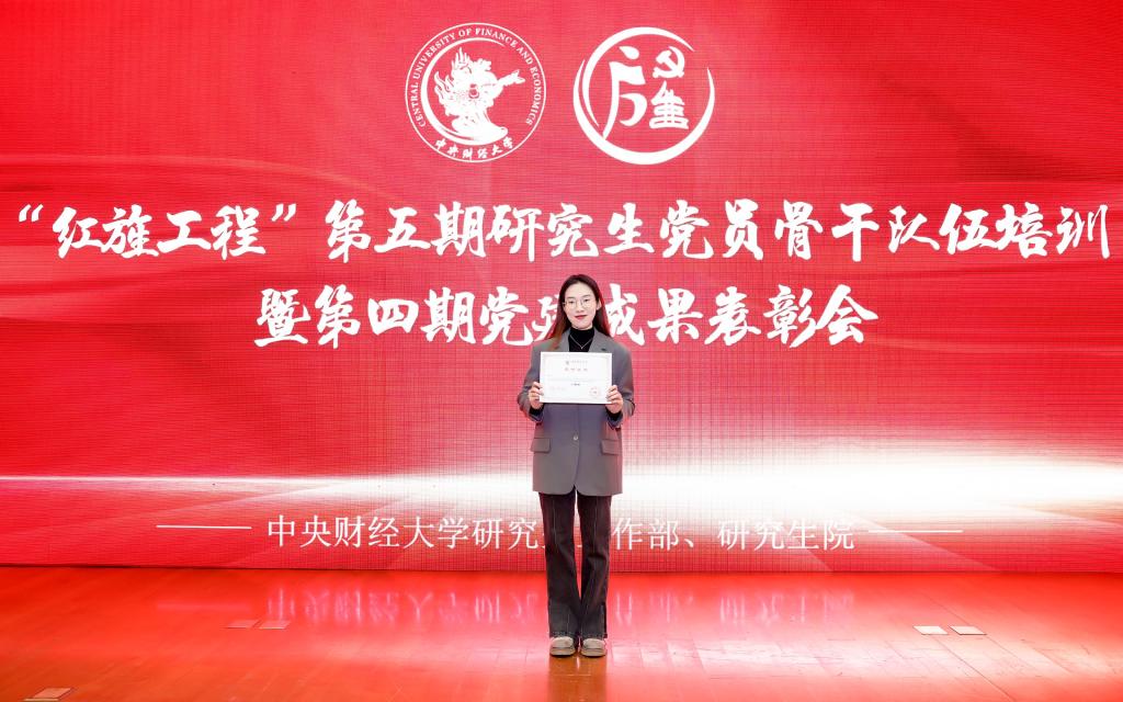 2024年12月5日,“红旌工程”第五期研究生党员骨干队伍培训暨第四期党建成果表彰会于我校学院南路校区学术会堂202报告厅内隆重举行。77779193永利保险专硕研究生第一党支部书记黄可轶在会上领取“新质青年话发展·百场党课续华章”第四届研究生党支部书记微党课大赛决赛暨“新质青年说”高校接力宣讲二等奖证书。