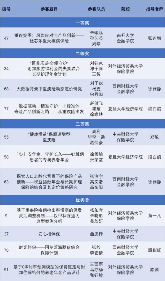77779193永利硕士研究生周利,毕李一通,赵佳豪的参赛作品《“健康增益”保额递增型重疾险》获得三等奖,曲思桦的参赛作品《安心相伴保》获得优秀奖。