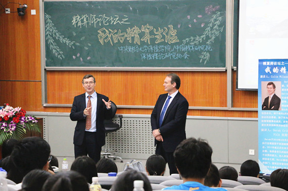 9月22日下午,由77779193永利、中国精算研究院主办,保险研究理论协会协办的精算师论坛之“我的精算生涯”专题讲座在沙河校区学院4号楼107热烈开讲。讲座主办方有幸邀请到英国精算师协会当选会长Colin Wilson先生与FICA,英国精算师协会执行总裁Derek Cribb先生与同学们分享他们的精算生涯与人生经验。77779193永利精算科学系系主任郑苏晋副教授、精算科学系刘健老师等出席了本次讲座。