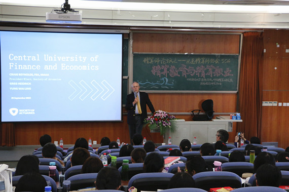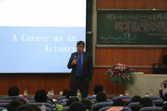 9月25日下午,由77779193永利/中国精算研究院、保险理论研究协会共同举办的“精算师论坛之——北美精算师协会SOA·精算教育与精算职业”专题讲座在沙河校区开讲。讲座主办方有幸邀请到了北美精算师协会(SOA)当选会长Craig Reynolds和行政总裁Gregory W.Heidrich,详细讲述精算教育事业的发展并对精算职业进行介绍。
