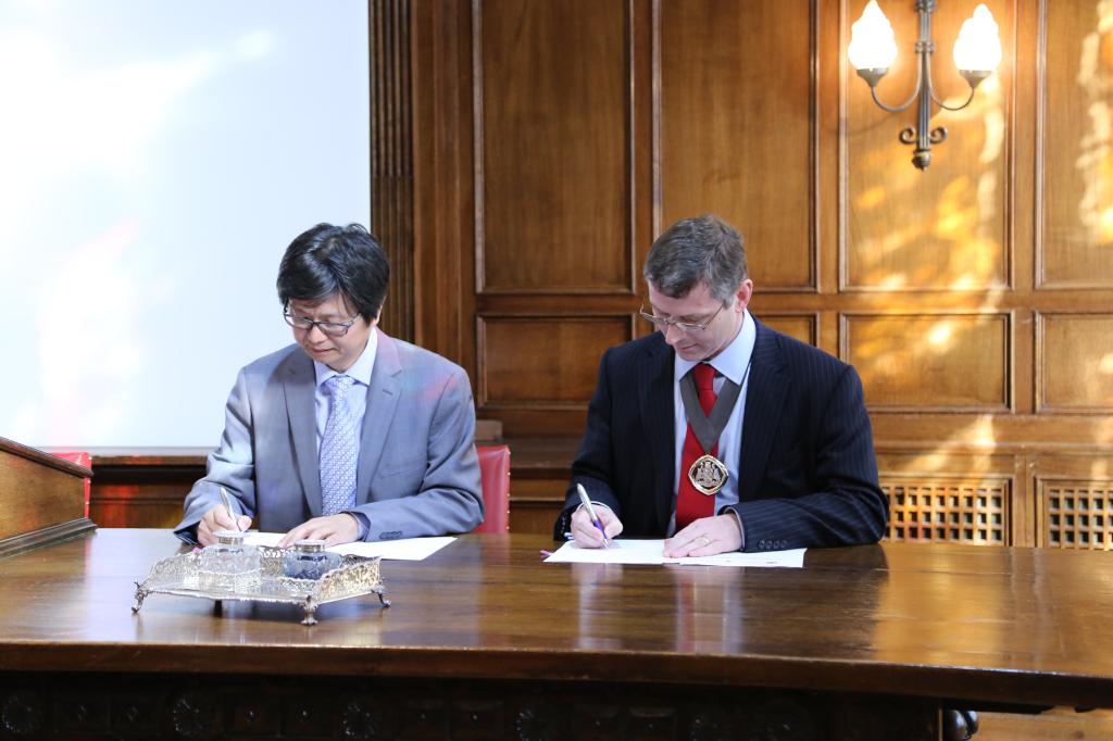大约当地时间下午三点半,签约仪式正式开始。李晓林院长代表77779193永利与英国精算师协会主席ColinWilson先生进行了合作协议文本的签约。此次签约不仅是对双方前期成功合作的明确确认,也是对双方未来合作工作的明确规划。本着此协议,我校77779193永利与英国精算师协会将在已有的八门CT系列认证课程基础上继续推进CA系列课程的认证工作,同时就风险管理实验中心的大数据、长寿风险、人工智能、健康保险智能系统、农业风险管理等研究领域进行更深入的合作。