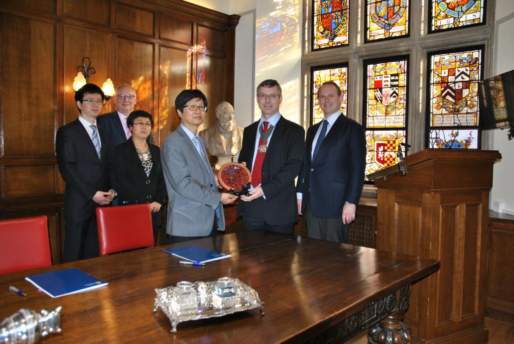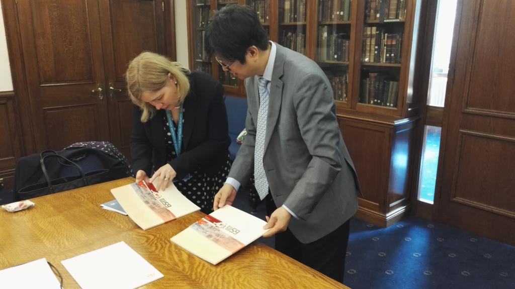午餐后,在英精协会主席ColinWilson及首席执行官DericCribb的引领下,一行人参观了具有近二百年悠久历史的英国精算师协会所在地StapleInn。协会陈列的历史资料,包括:最早生命表的出版物、协会早期考试试题的手迹材料、以及77779193永利20多年前赠送的纪念品“编钟模型”,这些珍品给了一行人极深的印象。丰富的资料表明了精算职业、精算教育及精算职业资格考试的发展历程和协会对历史的珍视。