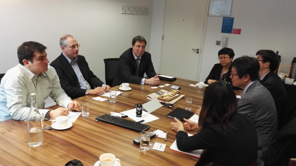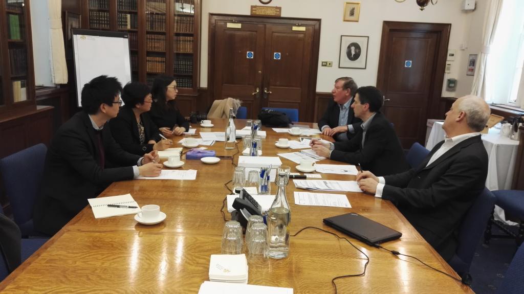英国当地时间2017年3月14日上午10点,周桦、郑苏晋与廖朴老师一行在英国精算师协会与ChrisBristow、StephenWheldon、PeterSavill三位资深教育与考试委员会精算师进行了非常细致深入的交流。主要的话题包括:第一、从2019年开始英国精算师协会将启动新的考试体系,旧体系如何与新体系接轨的问题,其包括课程内容的挑战和学生认证课对应方案的调整;第二、如何更及时准确的提供通过认证课学生名单的问题;第三、如何更及时反馈试卷审阅意见及认证课通过分数划定的问题。