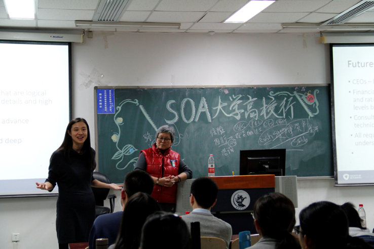 紧接着,李晶鑫女士为我们讲述了她自己接触到精算师这个行业的经历,同时为我们介绍了SOA的基本情况、未来几年新的变化以及很多相关信息。SOA可提供的网上模拟试题,SOA的官方微信、微博等等。在这个过程中,她鼓励我们多去尝试,多方位的了解信息,更好的对自己未来的职业生涯做好规划。