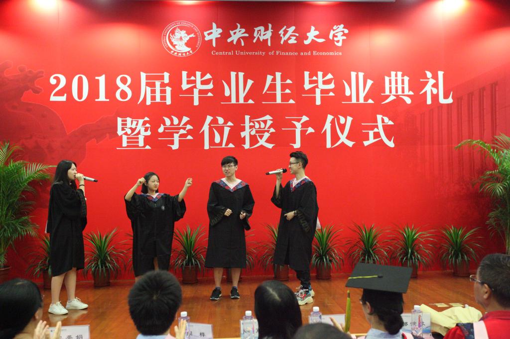 王颖老师宣读了表彰2018届优秀毕业生的决定,由副院长周明老师、副院长周桦老师、院长助理王庆焕老师为获奖同学颁发证书和纪念品,希望同学们毕业之后再次展现中财人、保险人的优良品质和光荣传统。
