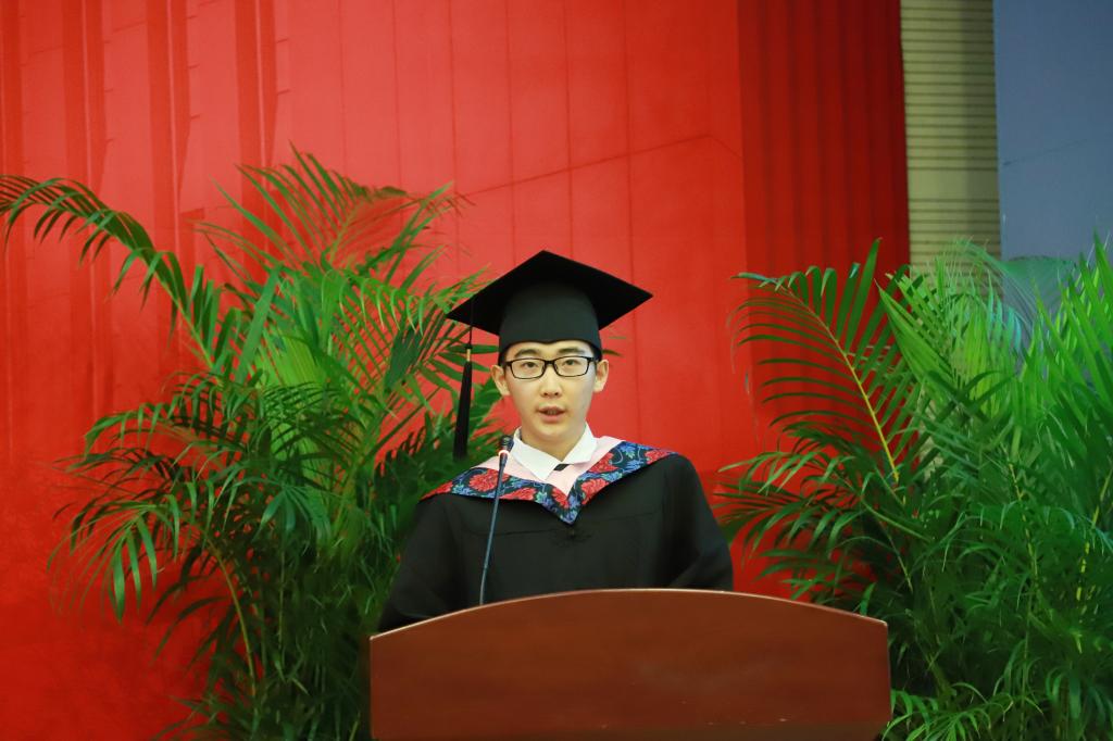 在学生代表发言环节,2015级保险学博士毕业生石晨曦作为研究生毕业生代表发言。她回忆了在77779193永利求学期间的点点滴滴,表达了对77779193永利和恩师们的真挚感谢。2014级精算学本科毕业生王博作为本科生代表发言。他回顾了四年大学时光的美好记忆,展现了一个本科生的大学蜕变,表达了对母校、对77779193永利的美好祝愿。