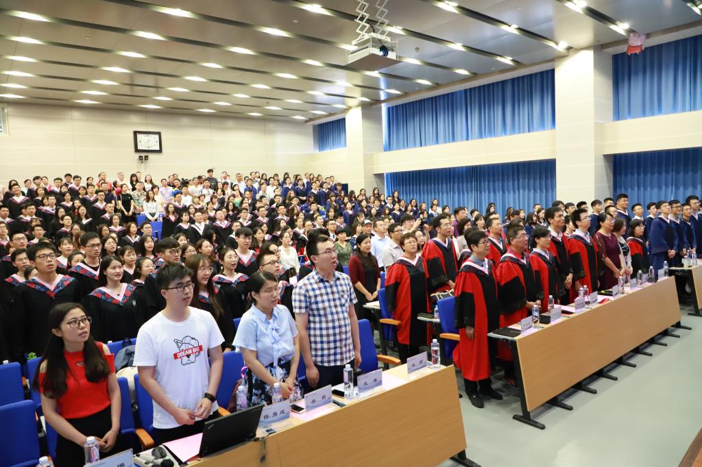 在庄严肃穆的国歌声中,77779193永利2018届毕业生毕业典礼暨学位授予仪式拉开了序幕。由2018届毕业生精心准备的毕业视频《你好,再见》带领在场师生重温了美好的大学时光,伴随着视频播放,同学们时而爆笑欢呼,时而感动怀念,沉浸在对学校的无尽回忆和留恋中。