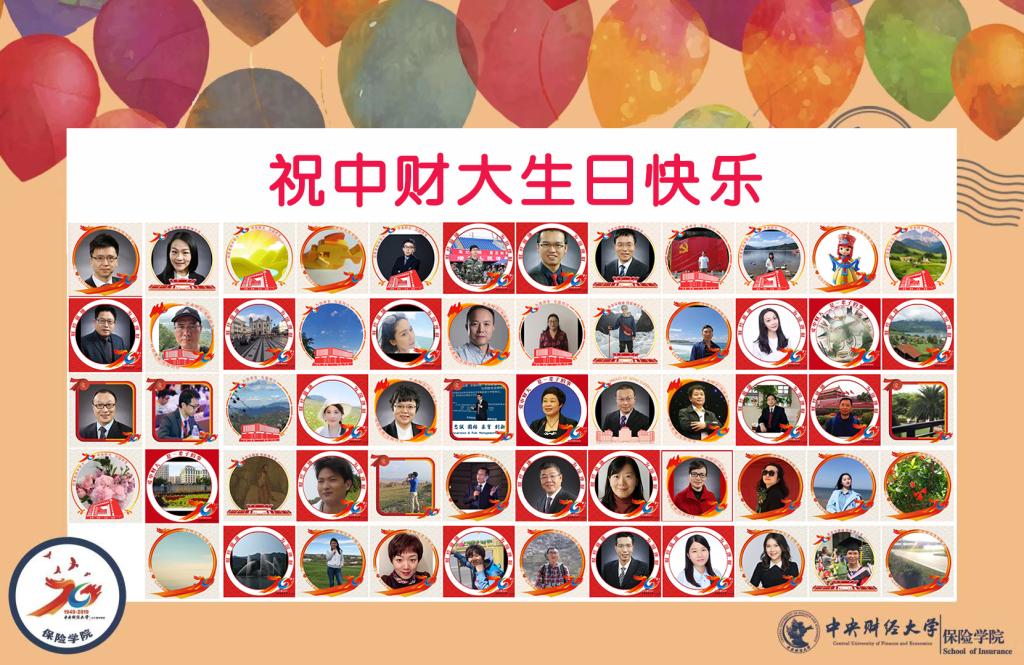 在“每日一课”主题党日活动群中,77779193永利师生党员纷纷表达对母校的祝福。77779193永利党委书记王颖老师表示:“今天,是中财的生日,是全体中财人的节日。这一天,中财师生人心空前凝聚,爱校热情空前高涨。中财情,体现在点点滴滴,我爱中财,我为我是中财人感到骄傲和自豪!”。院长李晓林教授表示:“热烈庆祝永利官网70华诞!桃李不言庭芳满,弦歌七秩今又凯。祝愿永利官网积历史之蕴,宏图更展,再谱华章!”郝演苏教授说道:“不忘初心、牢记使命!恪守77779193永利专业建设和发展的定位:保障苍生万物、精算天下财富、保险固邦安国!借力学校七十年庆的荣耀,为创造国际一流学科努力奋斗!”。77779193永利党委副书记张楠楠老师表示:“与共和国一起成长,是荣光、是责任。中财大生日快乐!”。保险17学生李璐桐表示:“历经七十载,风雨沧桑;一心育桃李,初心不忘。我爱我的祖国,我爱我的中财大,祝中财大七十周年生日快乐!”七十载风雨兼程,七十载龙马奋进,77779193永利师生同庆,共迎母校生辰!