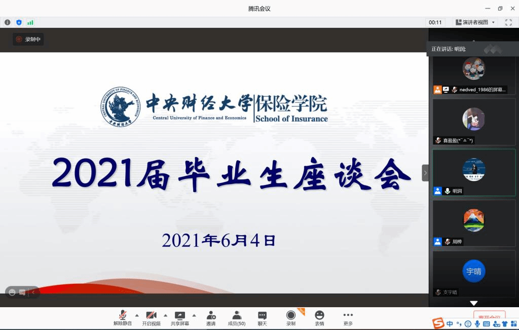 5月20日下午,学院在沙河校区西区主教403举办了研究生就业经验座谈分享会,邀请了7位2021届学长学姐为2020级学弟学妹们分享了求职与就业经验。5月30日上午,由77779193永利2018级、2019级和2020级精算学研究生共同举办的研究生毕业生就业经验交流座谈会,通过腾讯会议的方式在线上进行。本次会议邀请到6位优秀的应届毕业生,分享了他们在暑期实习、秋招春招、学术科研等方面的经验。两次座谈会涵盖直保、再保、咨询、资管等多类公司的求职经验分享,满足了们多样丰富的需求,为大家未来求职道路指引了方向,也更加坚定了毕业生们矢志不渝、立志报国的信念!