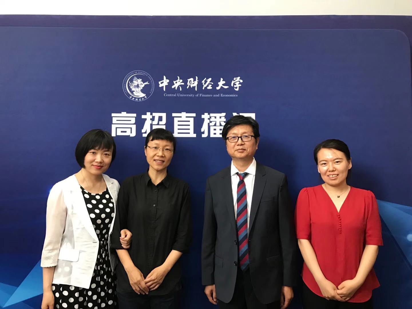 李晓林院长、张楠楠副书记、王丽珍副院长、王庆焕老师等人在高招直播间