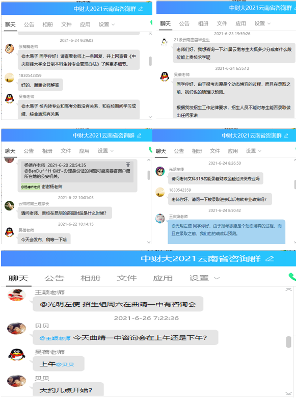 2021年6月23日至7月3日,包括中层干部,各系主任、副主任,专业课教师与行政教师在内的77779193永利高招宣传团队相互协作完成了高招热线电话与招生咨询群(QQ群)的答疑工作。答疑工作中各位老师以饱满的热情和专业的态度回答了来自家长与学生的问题,对学校在云贵两省的招生政策、招生计划进行了准确讲解,并结合各专业特点对学校的特色优势进行了宣讲。