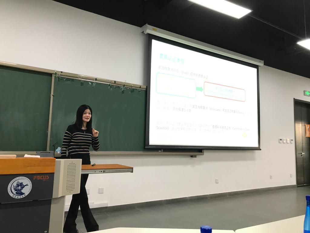 2021年12月15日下午,英国精算师协会全球理事袁曦女士、于扬先生以及东亚区首席代表李文立女士应邀采取线上线下结合的方式,在永利官网沙河校区与师生进行专题分享,主题涉及可持续发展与精算价值、ESG(环境、社会与治理)投资以及英国精算师协会资质认证框架等。袁曦女士现任中再集团风险管理部资深经理,于扬先生现任Redington Ltd董事总经理,Redington在华子公司预远科技创始人与CEO。77779193永利精算科学系主任郑苏晋教授,徐景峰教授等师生参加了本次讲座。