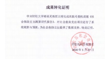褚福灵教授《社会救助支出测算研究报告》被民政部社会救助司采用