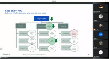 侯洋先生还为同学们详细展示了偿二代监管体系及偿付能力充足率计算方法,以案例学习的方式分析探讨产险再保险可以在其中发挥的作用。最后,侯洋先生还介绍了瑞士再保险近些年在产险再保险方面的若干创新,激发了学生对非寿险精算实务的兴趣与思考。