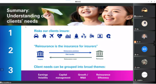 首先,侯洋先生从自身工作经验出发较为全面地向学生们讲授产险再保险理论基础,并积极介绍每种再保合约在实务中的应用情况,包括风险保障和转移方式、再保险公司的客户需求、传统再保险合约种类、结构和作用,还以举例的方式介绍了定制化再保险的发展,对学生们深入了解产险再保险提供了非常大的帮助。
