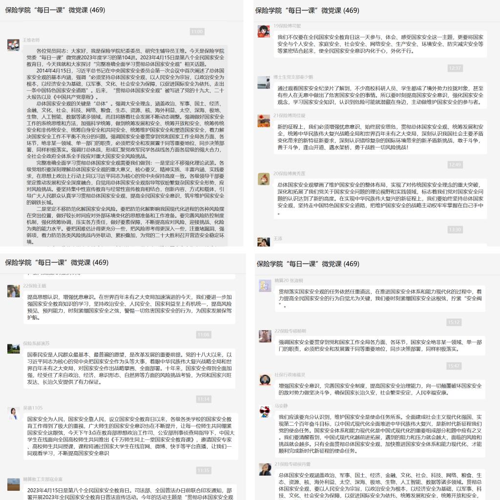 同时,为加强党员同志的国家安全意识,树牢总体国家安全观,77779193永利党委依托“每日一课”微党课平台发表主题为“完整准确全面学习贯彻总体国家安全观”的宣讲。各党支部师生踊跃参与,从多个角度深入探讨学习总体国家安全观,纷纷表示,国家安全人人有责,每个人都应当增强国家安全意识,从小事做起,自觉维护各领域安全,为国家发展保驾护航。