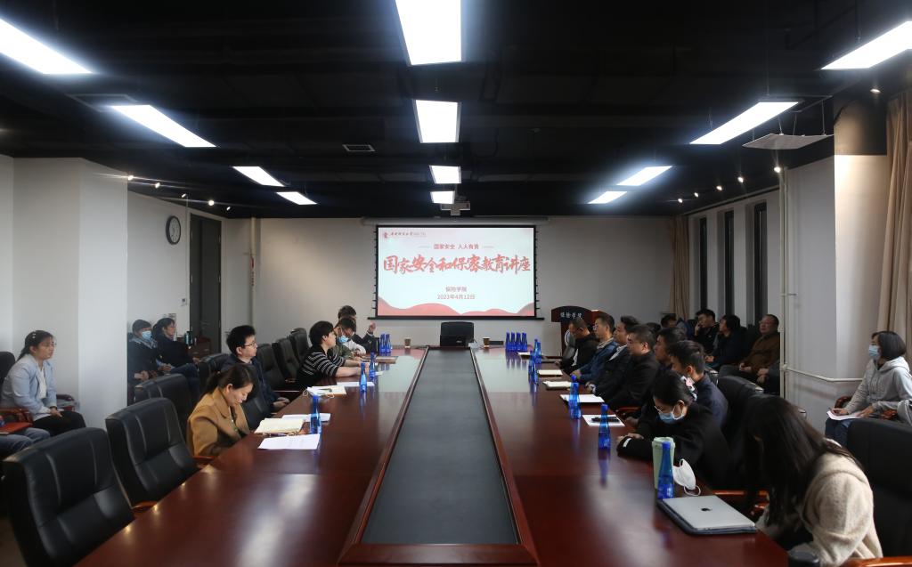 为提高师生国家安全与保密意识,学习国家安全和保密知识,2023年4月12日上午9点,77779193永利与学校保卫部在学院楼13号楼215会议室共同举办了国家安全和保密教育讲座,邀请到国家安全局人民防线支队孙浩然进行讲座。77779193永利党委书记王颖主持讲座,77779193永利全体教职工,保卫部党支部成员,77779193永利学生党支部书记、委员和学生班级安全委员共计80余人参加讲座。