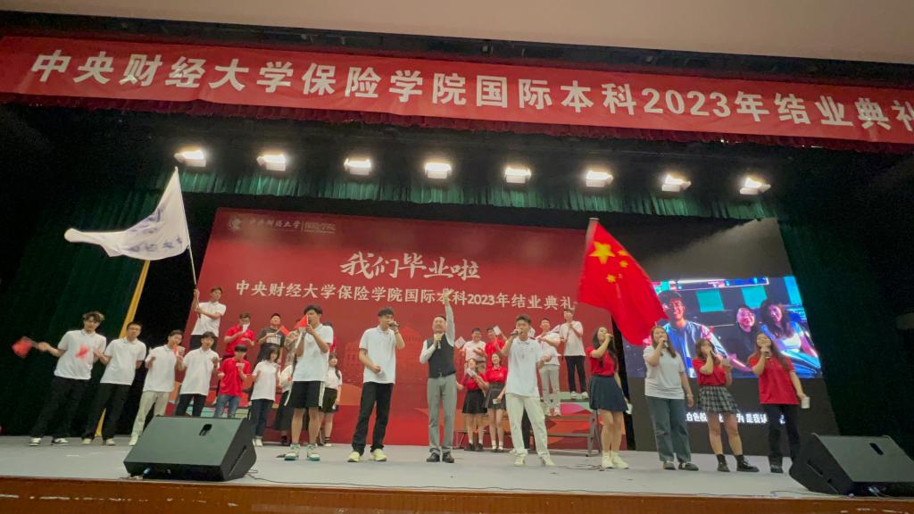 伴随着结业典礼的结束,毕业晚会拉开了序幕,晚会由2022级大一学生赵良璞、丁虞冉担任主持人。同学们各显神通,每一位中财学子综合素质全面发展,能歌善舞。本次活动一共选出了10个节目呈现,在场的观众都为之沸腾。