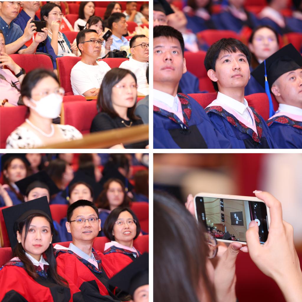 在欢快的音乐声中,学位授予仪式正式开始。由副院长郑苏晋宣读获得博士学位、硕士学位学生名单,副院长王丽珍宣读获得学士学位学生名单,周桦院长分别为两届研究生与本科生进行拨穗正冠、颁发毕业证书并合影留念。望各位同学在未来的人生中担负起对中财精神进行传承和接力的重任,绽放绚丽的青春之花!