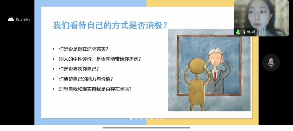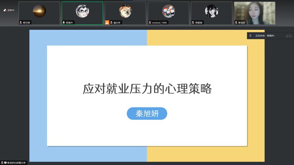 首先,秦老师分析了对求职产生回避情绪的原因,并引导学生正确看待焦虑的积极作用。秦老师通过举例说明不需过度追求完美,帮助学生从源头消减焦虑,并对如何应对焦虑情绪,给出了一些切实易行的缓解方法,具有很大的实用意义。