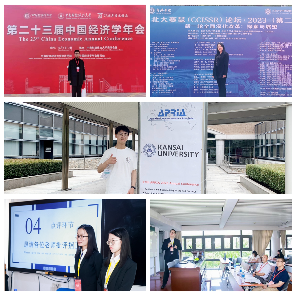 这一年,学院40余名学生受邀参加亚太风险与保险学会第27届年会、第二十届北大赛瑟(CCISSR)论坛、2023中国保险与风险管理国际年会、第二十三届中国经济学年会、第十八届中国管理学年会、第二十届中国金融学年会等高端学术会议并做论文报告,1位硕士生应邀参加第二届“全国大学生社会保障调查报告与案例分析报告”成果交流会并获优秀报告。