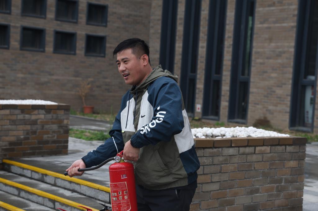 随后,保卫处臧斌老师详细讲解了灭火器的使用方法和注意事项,强调了灭火器“提、拔、握、扫”的几个关键点,并进行了现场示范。在专业人员的指导下,老师们积极踊跃地进行了灭火器的实操演练,进一步巩固了消防安全知识。