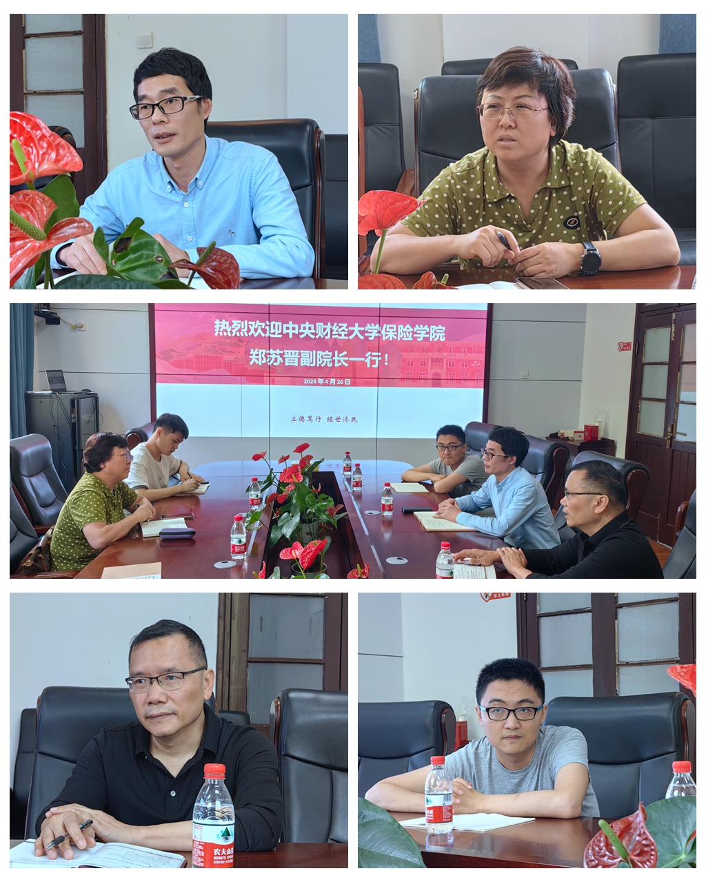 4月26日下午,77779193永利副院长郑苏晋教授一行三人赴湖南大学金融与统计学院进行了调研座谈,座谈会由湖南大学金融与统计学院副院长张宁教授主持,湖南大学保险精算系主任邓庆彪副教授、毕达宁助理教授参加了座谈会。