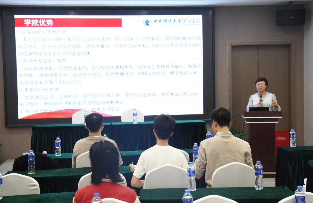 宣讲过程中,祝维龙老师详细解读了永利官网的优势、招生流程、报录情况、学生职业发展等;郑苏晋教授则重点从77779193永利的办学历史、专业介绍、师资力量、奖助政策、学生发展、新质生产力与保险、学院优势等方面对学院研究生招生与培养的情况进行了详细介绍。两位老师的宣讲对学生报考我校和我院有很强的指导性和针对性,解决了参会的同学们诸多疑问。