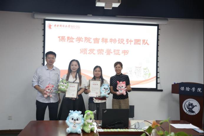 学院领导为吉祥物设计团队颁发证书