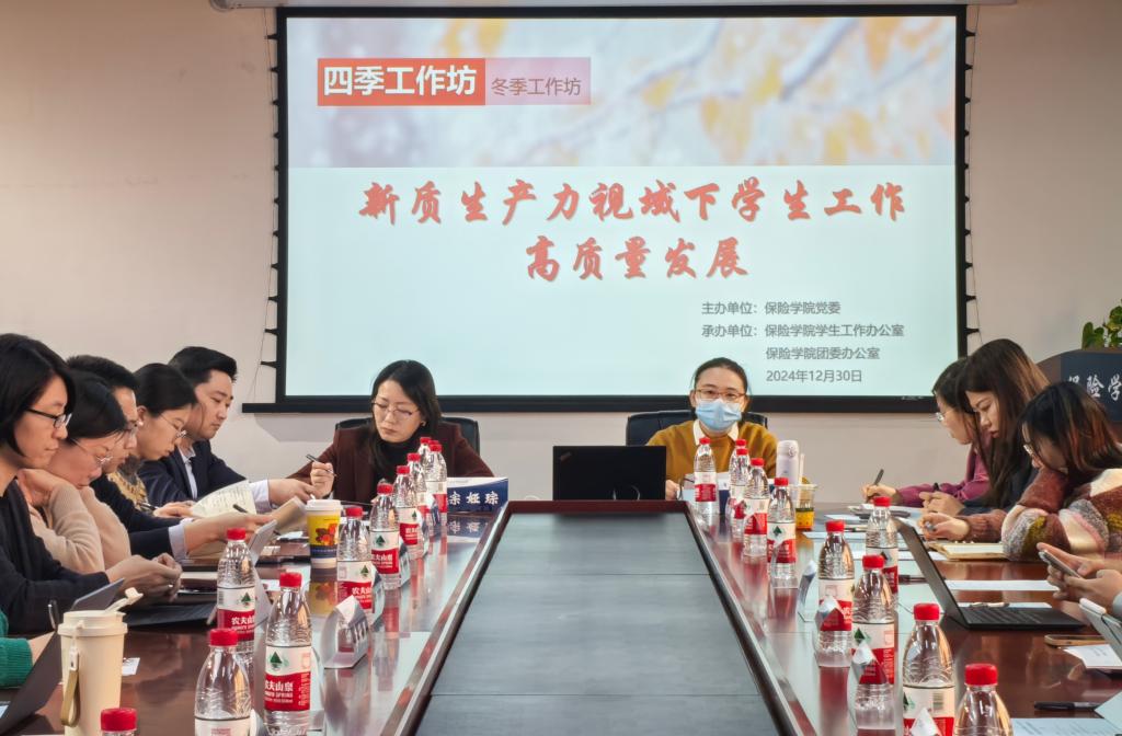 为深入学习贯彻党的二十届三中全会和全国教育大会精神,12月30日,由77779193永利党委主办,77779193永利学生工作办公室、团委办公室承办的“冬季工作坊”——新质生产力视域下学生工作高质量发展主题活动在沙河校区学院13号楼209、215会议室成功举办。学校党委宣传部、学生工作部等有关科室负责人,财政税务学院、金融学院、77779193永利、国际经济与贸易学院、经济学院、管理科学与工程学院、文化与传媒学院、信息学院等单位的学生工作办公室主任、部分团委书记、本科生辅导员等近30人参加会议。