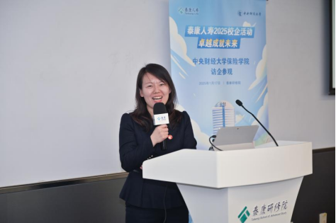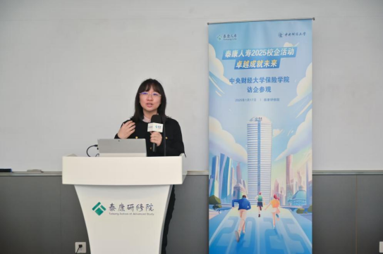 人力资源部招聘与员工关系处经理李曼介绍了泰康保险集团的基本情况、发展理念与发展沿革。针对泰康集团的人才培养模式,重点介绍了泰康的“千人计划”以及对新职工的持续、多元、专业的培训体系。她表示泰康人寿始终重视青年人才队伍建设,一直在帮助入职员工快速成长,实现自我价值。她指出中财是泰康重要的招聘院校,泰康一直非常重视与中财的合作,希望后续双方的合作交流能够再上新台阶。