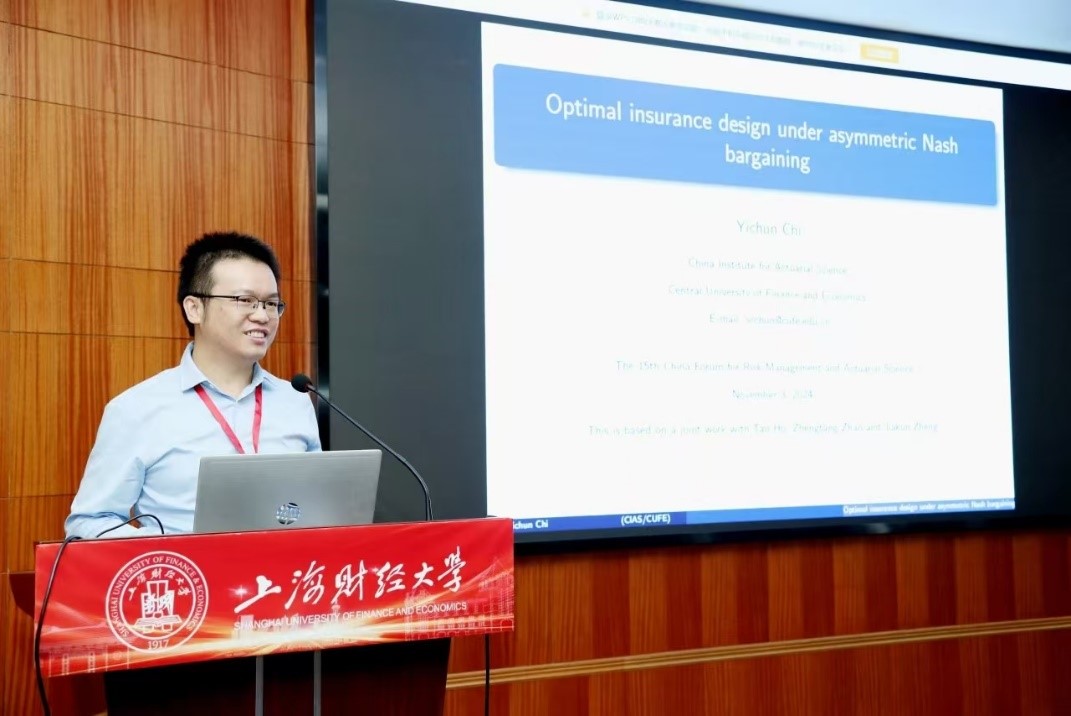 11月3日,池义春研究员在第15届中国风险管理与精算论坛的大会报告中就论文“Optimal insurance design under asymmetric Nash bargaining”进行汇报。池义春研究员在文章中构建了一个风险中性保险公司与风险规避个体之间的保险合同谈判模型,在不对称纳什谈判框架下,分析了最优保险合同的设计,并将其应用于评估不同市场结构下保险合同的最优性。研究试图为理解低免赔额偏好的成因提供理论依据,并为保险合同设计提供政策建议。