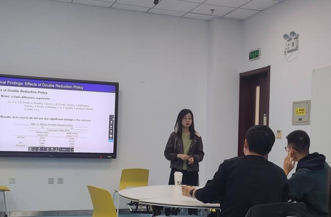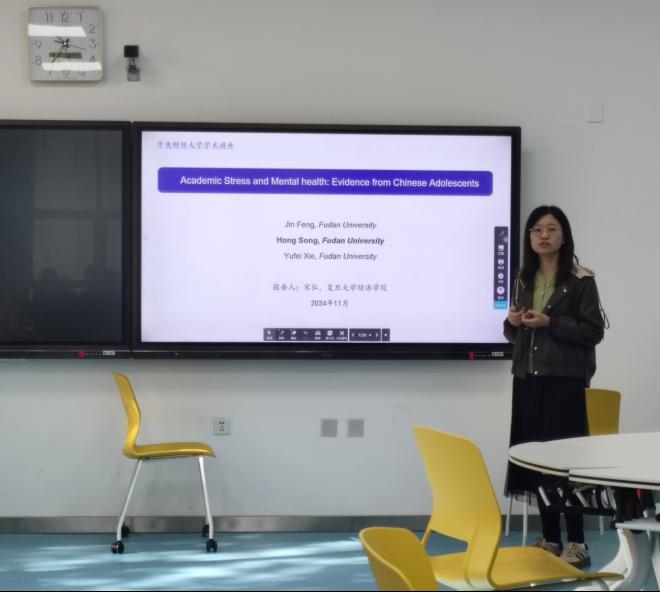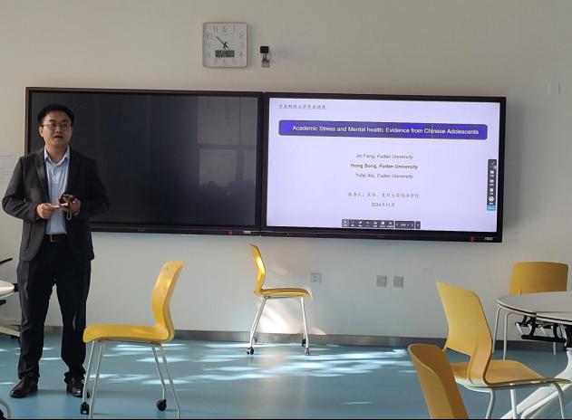 宋弘教授作了题为“Academic Stress and Mental health: Evidence from Chinese Adolescents”学术讲座。她指出,当前,在世界众多国家,青少年学业压力和心理健康问题已成为备受瞩目的焦点话题。宋弘教授运用医保报销数据,研究得出了一些有趣且值得深思的发现。其论文为深入了解青少年心理健康状况提供了新的视角和有力依据,对推动青少年心理健康保护工作以及教育政策优化有着重要意义。
