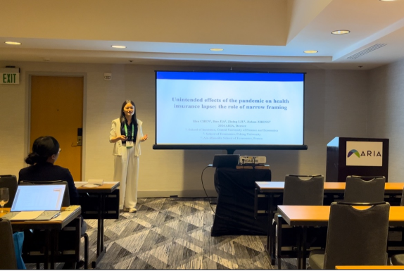 8月6日上午,助理教授刘子宁在RenewalBehavior分会场上报告了其与我院教授陈华、北京大学副教授贾若以及法国艾克斯-马赛经济学院(AMSE)和地中海中央理工双聘助理教授(高级)郑家昆合作的学术论文“Unintended effects of the pandemic on health insurance lapse: the role of narrow framing”。