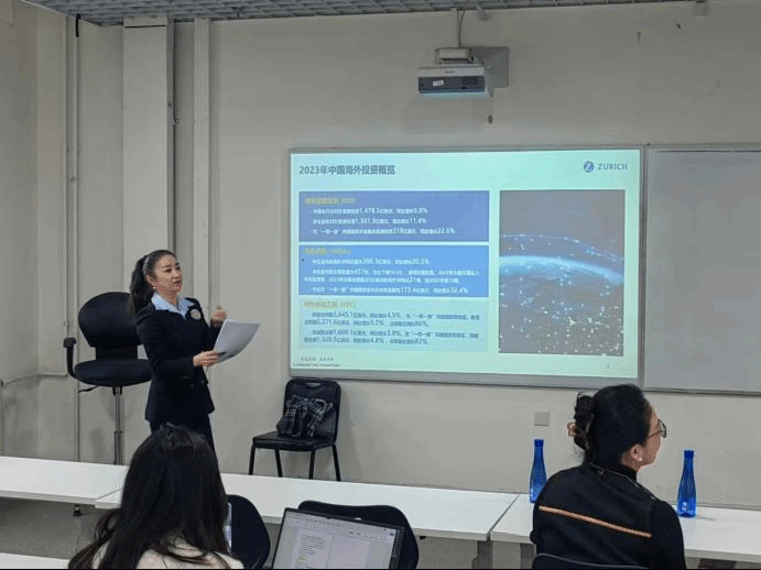 李艳秋女士首先结合自身实务经验言简意赅地普及了国际保险的定义与内涵,之后在介绍了2023年中国海外投资情况的基础上,李艳秋女士指出中资企业出海为国际险企带来了新的机会,通过为出海的中资企业提供“保险+服务”的一揽子解决方案,险企一方面响应了中央推进实体经济与金融业相互促进和协同发展的号召,另一方面也建立了健全的海外风险管理体系。此外,李艳秋女士也介绍了苏黎世保险的公司概况、公司定位、业务情况以及当下面临的挑战。