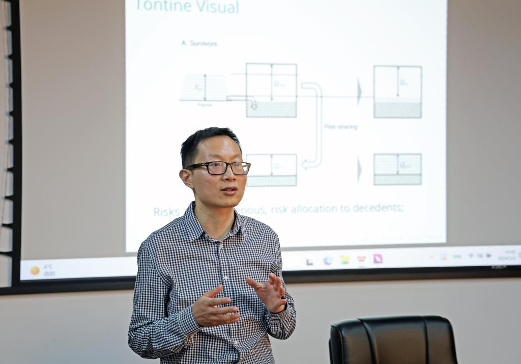 冯润桓教授现为清华大学经济管理学院讲席教授。加入清华大学之前,曾是美国伊利诺伊大学厄巴纳香槟分校教授(终身教职)、State Farm集团讲席教授、精算学专业主任、预测分析与风险管理专业创始主任。冯润桓教授的主要研究方向是保险精算、社会保障与养老金融、全球性风险治理等,此次学术交流活动,他分享了关于养老计划的设计与创新的最新研究。冯教授以韩国电影《鱿鱼游戏》作为切入点,认为鱿鱼游戏中的奖金分配机制结合唐提式保险可以用于养老计划的设计与创新。