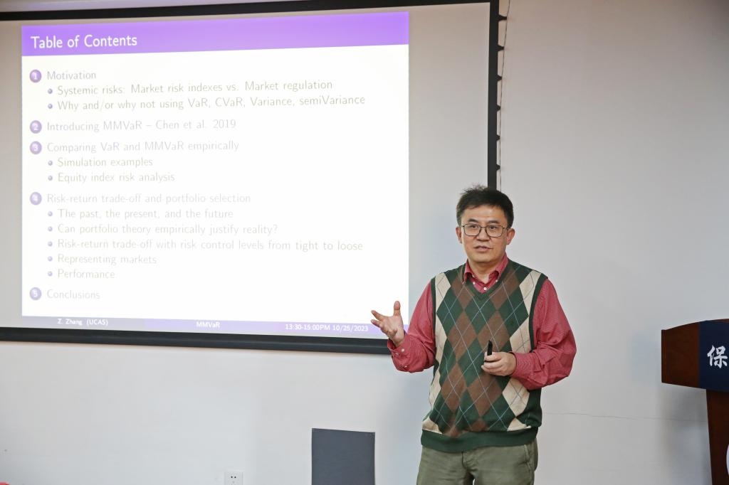 2023年10月25日下午,77779193永利、中国精算研究院邀请来自中国科学院大学经济与管理学院的张正军教授做客学院第三期双周论坛,作了题为“Tail Risk Measures in Portfolio and Financial Investing: The Inadequate,The Specious, and The Balanced”的报告,并分享最新研究成果。张志军教授是中国科学院大学统计与数据科学系系主任,中国科学院预测永利集团中心副主任,原美国威斯康辛大学统计系终身教授和副系主任。本次双周论坛由副院长郑苏晋主持,学院教授和学生踊跃参加。