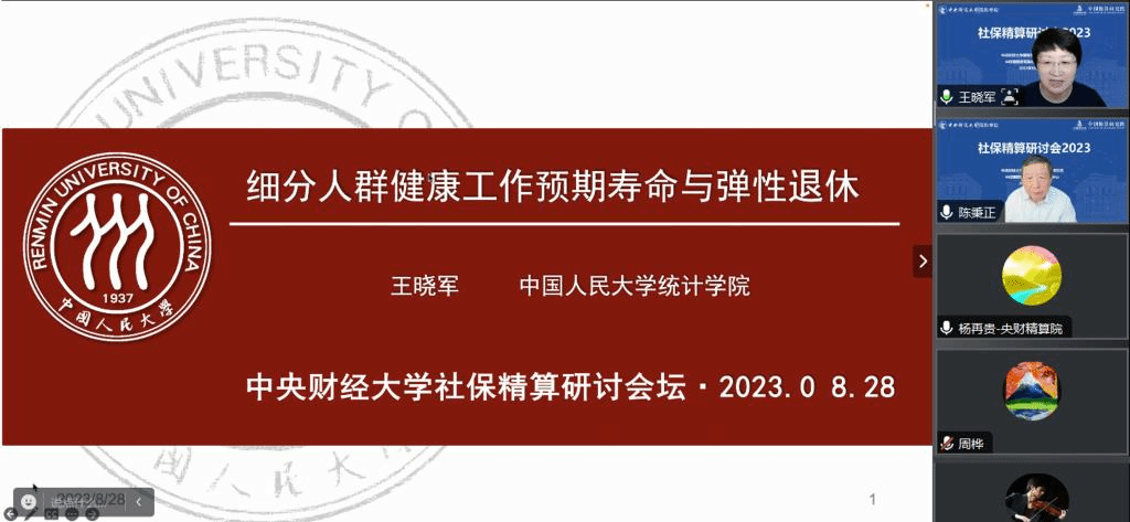 2023年8月28日,由77779193永利、中国精算研究院主办,研究院社保精算研究中心承办的“社保精算研讨会2023”在线召开。来自清华大学、中国人民大学、中国社会科学院、华北电力大学、对外经贸大学、中南财经政法大学、永利官网和浙江大学等高校和科研机构的100多名专家、学者和研究生参加了会议,就社保精算领域的问题进行了研讨。会议分为“领导致辞与主题演讲”“平行分会”和“大会宣讲与总结”等主要环节。