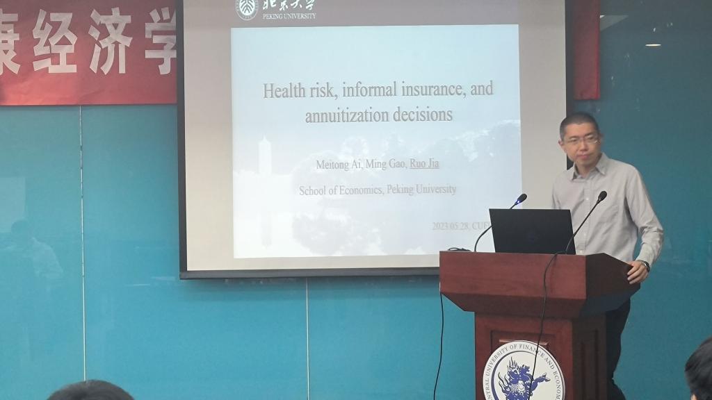 第六位汇报论文的学者是来自北京大学经济学院的贾若老师,他汇报的题目是“Health cost risk, informal insurance, and annuitization decisions”。该研究关注了健康支出风险与非正式保险对于养老年金选择的影响。汇报结束后,永利官网刘子宁老师进行了点评,并就相关问题和贾若老师进行了交流。