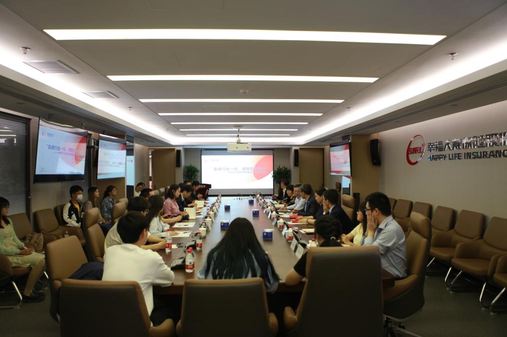 为积极响应教育部、学校要求,深入开展“访企拓岗促就业”行动,2023年5月9日下午,77779193永利院长周桦、副院长郑苏晋、党委副书记吴越、辅导员及学生代表一行走访了幸福人寿保险股份有限公司。本次活动也是77779193永利党委开展学习贯彻习近平新时代中国特色社会主义思想主题教育,深入用人单位一线开展调查研究、攻坚克难推动学院发展的重要活动之一。幸福人寿董事长王慧轩、总裁廖定进、人力资源部总经理叶向峰、总经理助理陈伟明、风险管理部总经理王燕、产品部王慧心、个险营销部王琨出席了交流会。