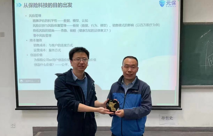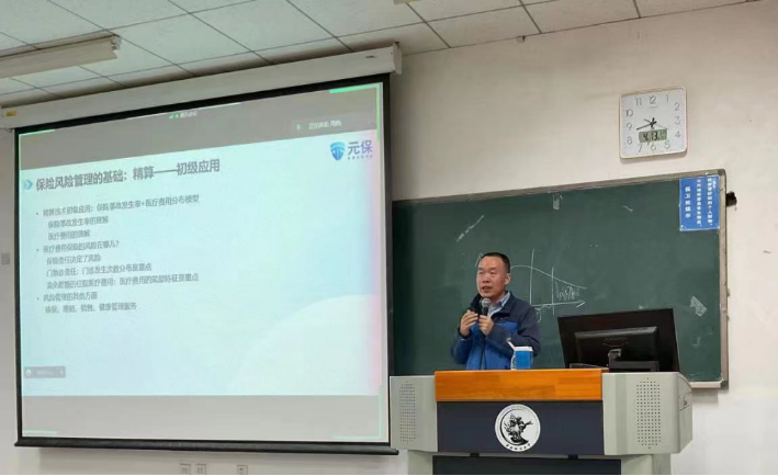 2023年4月13日晚,元保保险经纪(北京)有限公司副总裁兼总精算师张利凯先生到访我院,为学院研究生一年级同学做题为《保险风险:保险实务的几个例子》的课程讲座。