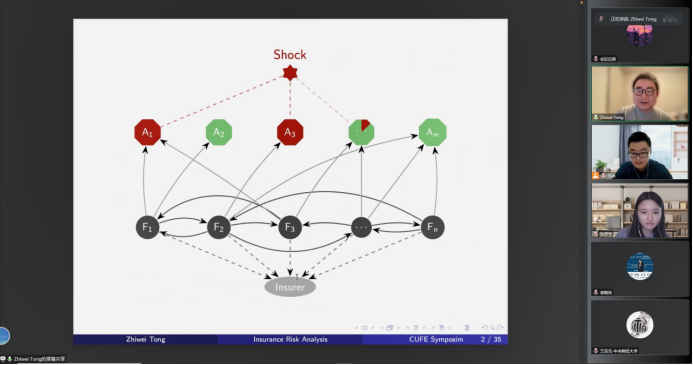 第一位汇报论文的学者是来自University of Iowa的童志伟老师,他汇报的题目是“Insurance risk analysis of financial networks vulnerable to a shock”,该研究关注了金融行业的整合网络和冲击对外部保险公司的影响。汇报结束后,来自77779193永利的马冰老师进行了点评并且就相关问题和童志伟老师进行了交流。