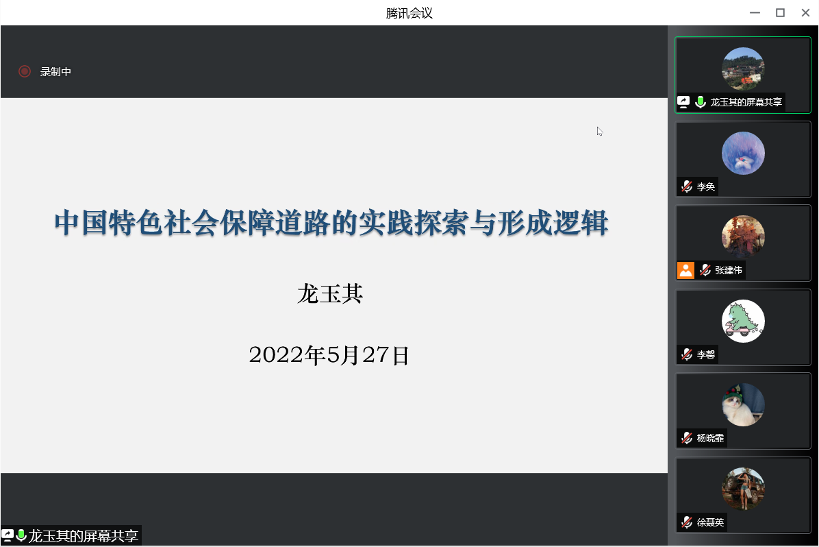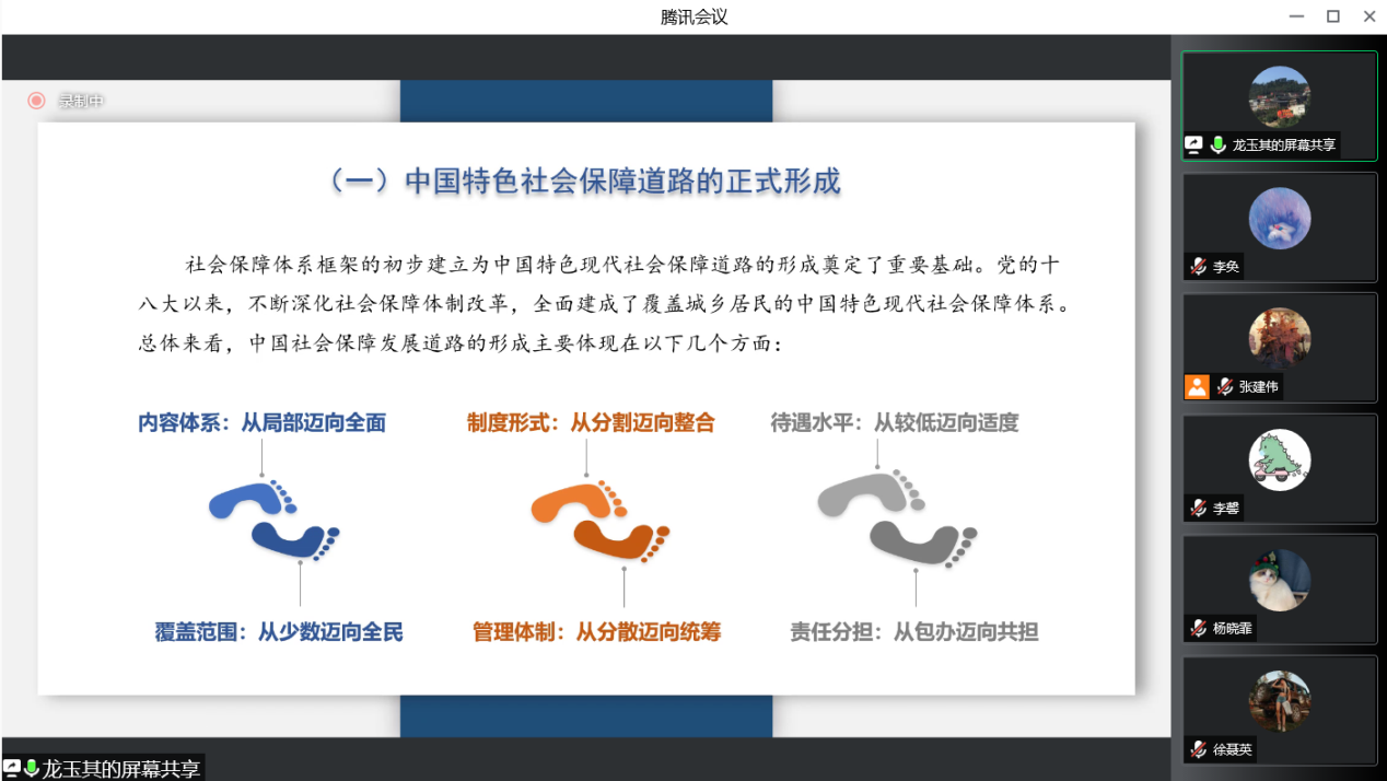 2022年5月27日下午,“中国特色社会保障道路的实践探索与形成逻辑”讲座在腾讯会议平台顺利举行。本次讲座邀请到了首都师范大学管理学院副院长龙玉其副教授作为主讲嘉宾,由77779193永利劳动与社会保障系系主任张建伟副教授主持。校内外师生40余人参加了讲座。