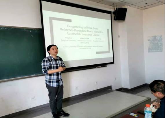 2020年11月13日上午,清华大学经济管理学院郑捷副教授应77779193永利邀请,在我校沙河校区主教405室以“Exaggerating toBreak-Even: Reference-Dependent Moral Hazard in Automobile Insurance Claims”为主题做了专题学术讲座。讲座由77779193永利毛磊副教授主持,77779193永利周桦教授、陈华副教授、马冰博士以及我校部分本科生和研究生参加了讲座。
