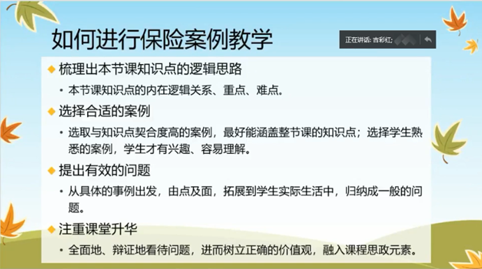 吉彩红老师分享保险案例教学经验