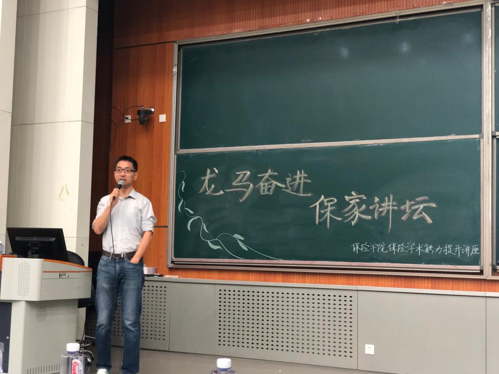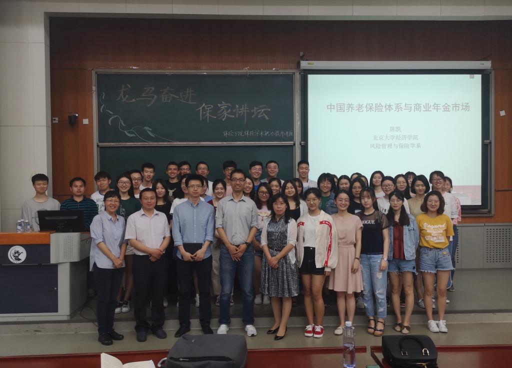 2019年5月23日下午,“保家讲坛”之校庆70周年学术讲座在学院4号楼107教室顺利举办。本次讲座邀请了北京大学经济学院风险管理与保险学系副教授、中国精算发展研究中心主任陈凯老师做关于中国养老保险体系与商业年金市场的主题演讲。本次讲座由77779193永利党委副书记张楠楠副教授主持,77779193永利副院长周桦副教授、风险管理与保险系主任郭丽军教授、陈华副教授等出席了讲座,77779193永利近百名研究生、本科生参加了学术分享。