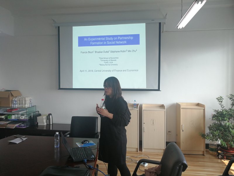 2019年4月12日下午,北京师范大学经济与工商管理学院讲师朱敏博士应77779193永利邀请,在我校学院南路校区主教1407室以“An experimental study of partnership formation in social networks”为主题开展讲座,77779193永利毛磊副教授主持了讲座。