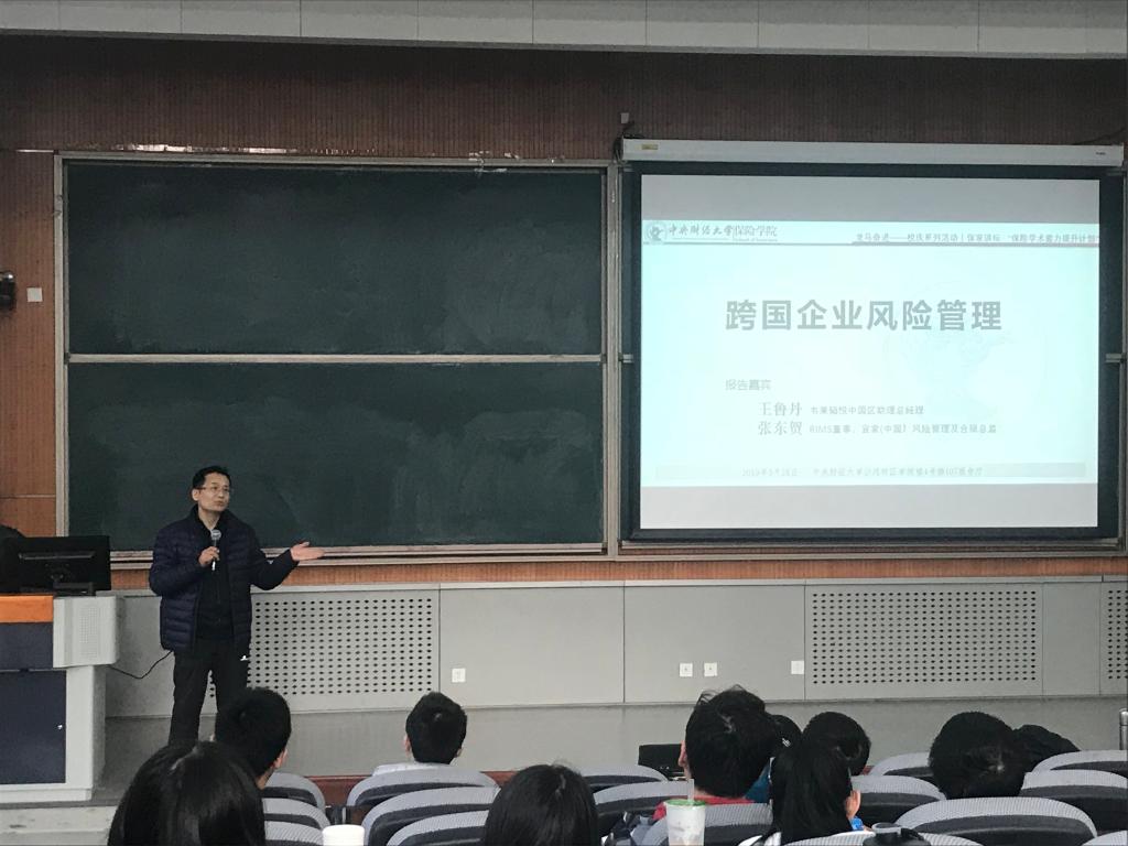 讲座伊始,徐老师为同学们介绍此次活动的两位主讲人——张东贺先生目前担任宜家(中国)风险管理及合规总监,并担任RIMS董事;77779193永利校友王鲁丹先生现任韦莱韬悦中国区助理总经理。两位主讲人都在风险管理行业耕耘多年,具有极丰富的行业经验,将为同学们分享最前沿的风险管理知识和自身求学求职经历。