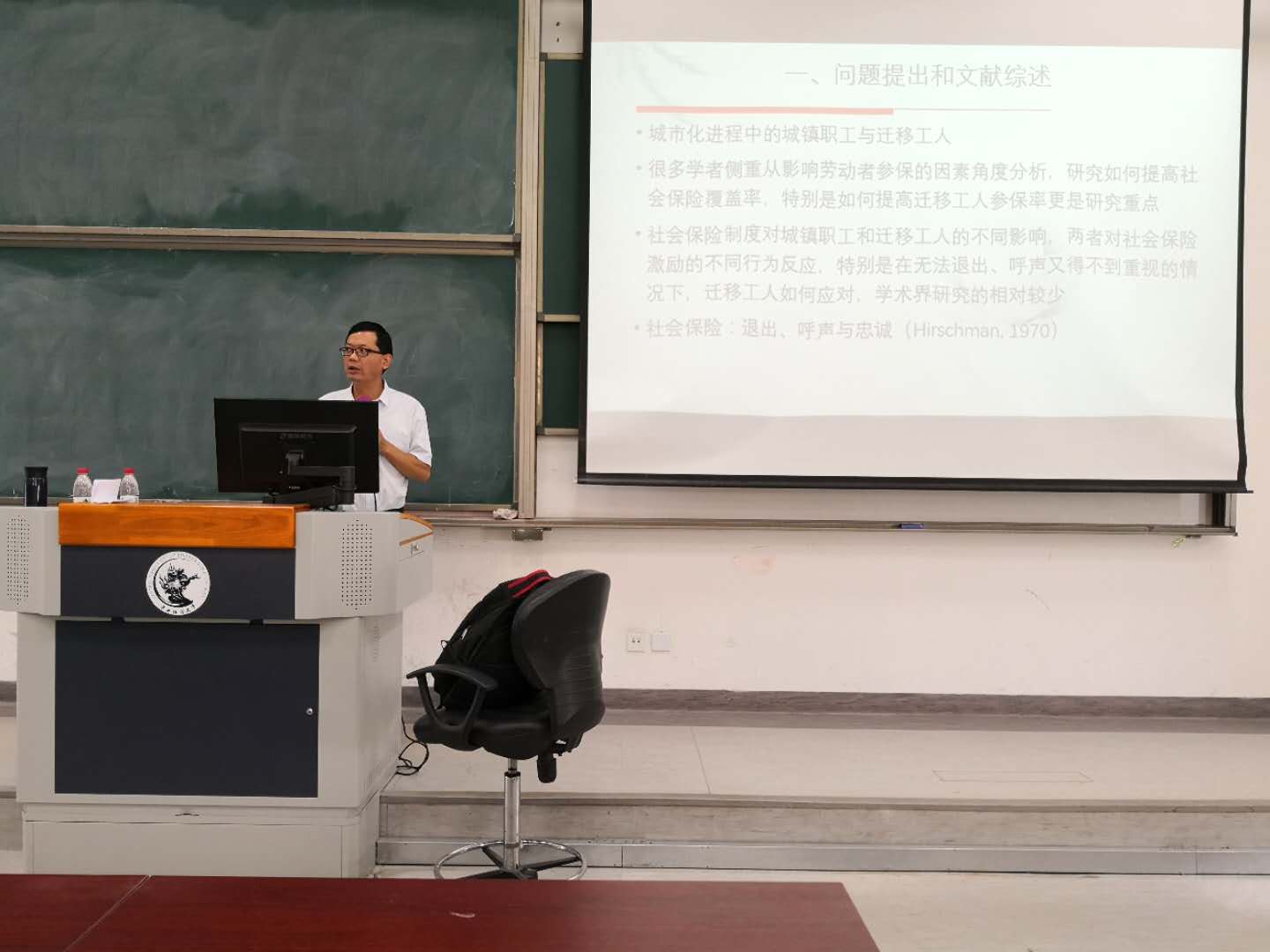 孙教授在全面介绍失业保险的道德风险效应和参保再就业效应的研究背景基础上,对国内外文献进行了全面的分析,然后介绍了Cox比例机会模型,利用中国城乡劳动力流动调查数据(RUMiC)分析了是否参加失业保险以及保险金替代率对城镇职工和迁移工人再就业的不同影响。他的研究表明,对于城镇职工而言,参加失业保险提高其再就业率,存在较强的参保再就业效应,该效应在高年龄、低学历组中更加显著,随着净资产的提高逐步弱化。对于迁移工人而言,参加失业保险降低其再就业率,存在较为明显的道德风险效应,该效应在低年龄、高学历组中更加显著,随着净资产的提高逐步弱化。无论是城镇职工还是迁移工人,提高失业保险替代率对再就业的影响随着失业时间呈现先上升后下降的趋势。孙教授的研究对完善我国失业保险制度、促进迁移工人更好融入城市具有重要意义。