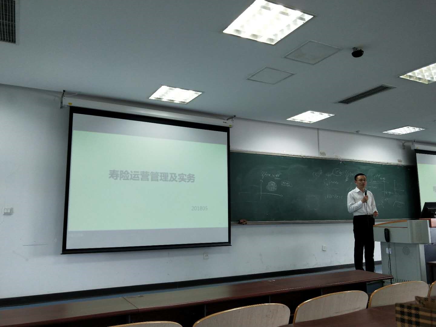 2018年5月9日下午,泰康养老首席核保师高剑老师应邀前来为我院学生开展了寿险运营管理与实务讲座。